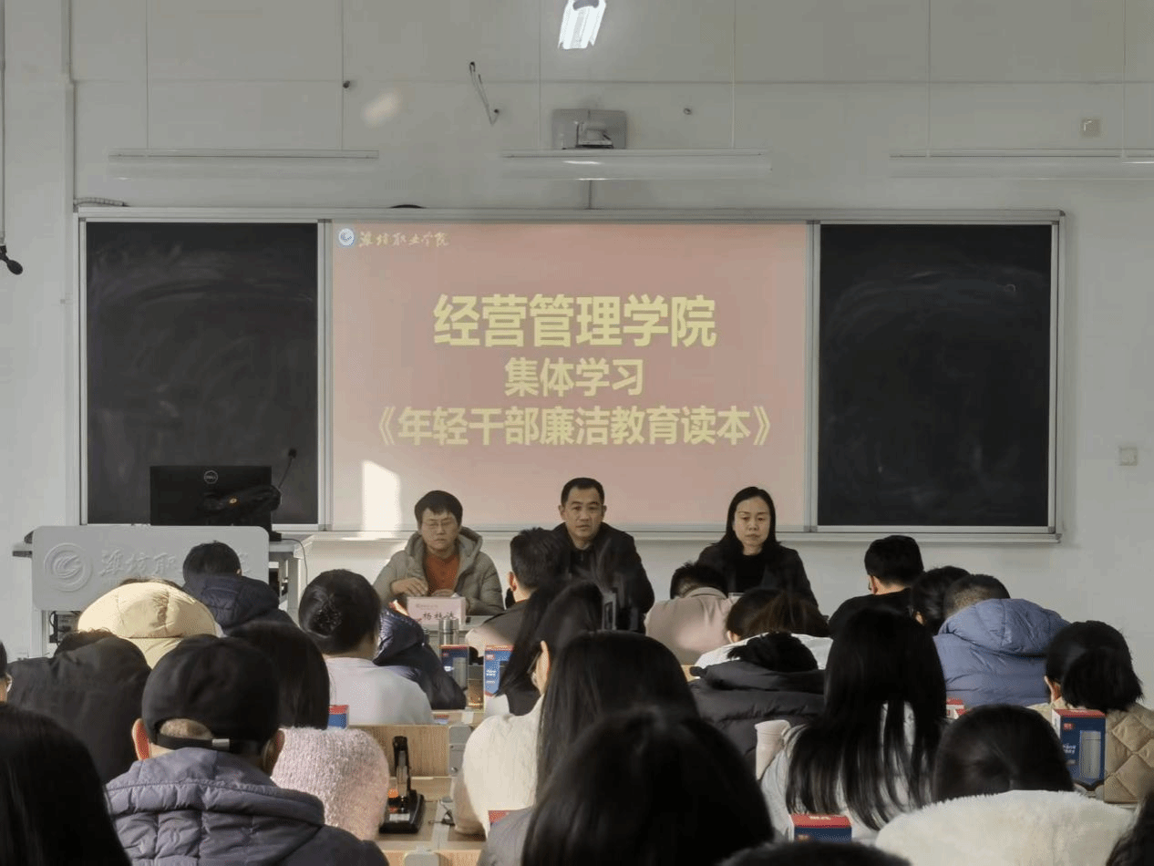 为筑牢教师思想道德防线,营造风清气正育人环境,1月16日,经营管理学院党总支在智泽楼B312教室开展廉洁教育活动,集中学习研讨《年轻干部廉洁教育读本》。经营管理学院全体教师参加。
