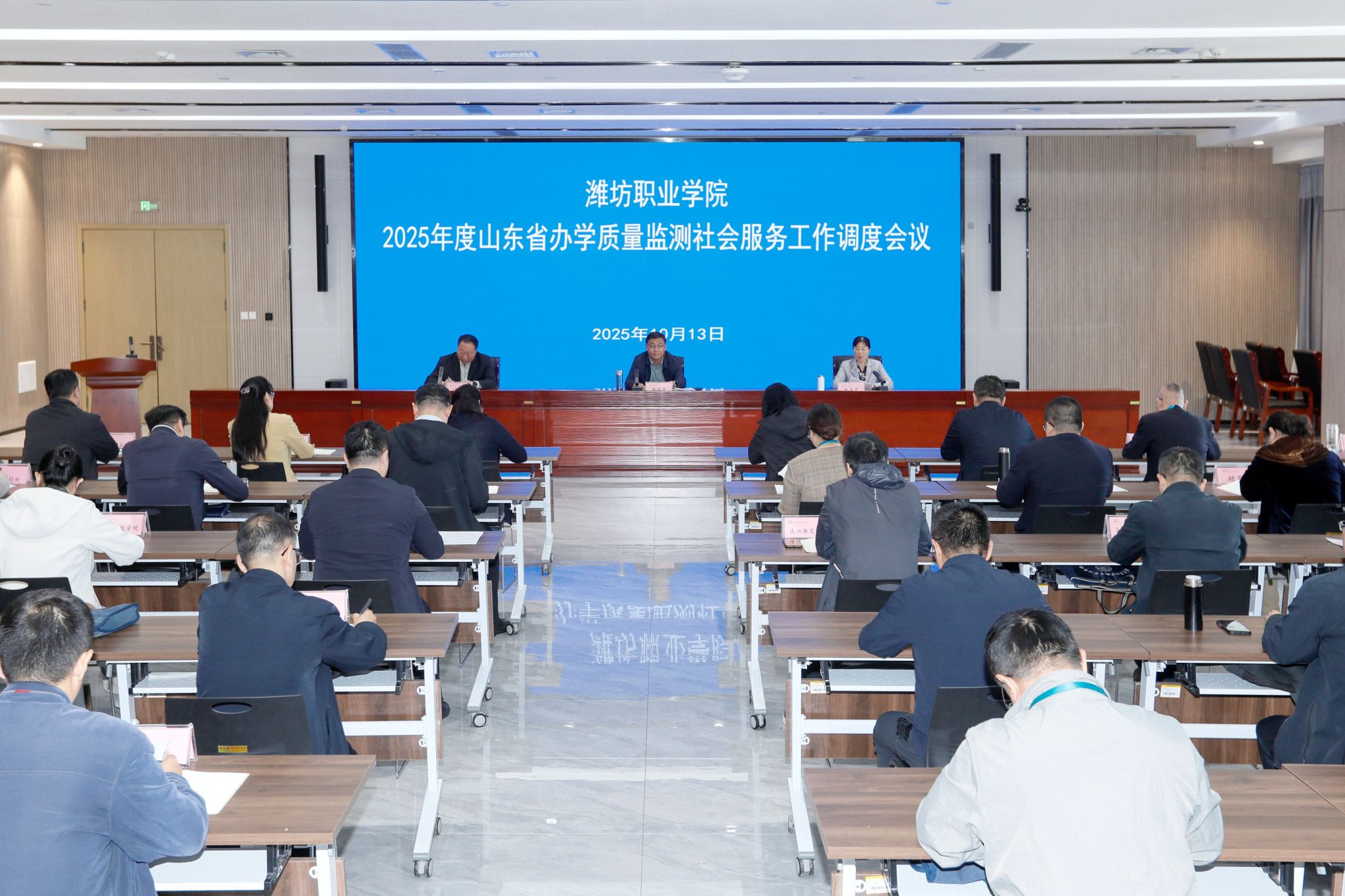 10月13日,学院2025年度山东省办学质量监测社会服务工作调度会议在滨海校区南区综合楼二楼东会议室召开。院长韩瑞东,副院长陈美霞,党委委员、副院长付一明出席会议,各职能部门、二级学院党政负责人参加会议。会议通报了我院2025年度山东省办学质量监测社会服务工作总体进展情况及各部门指标任务完成情况。部分部门介绍了典型经验做法、作表态发言并汇报下步具体工作举措。韩瑞东讲话。他强调指出,社会服务是高职院校的重要职能,...更多 -