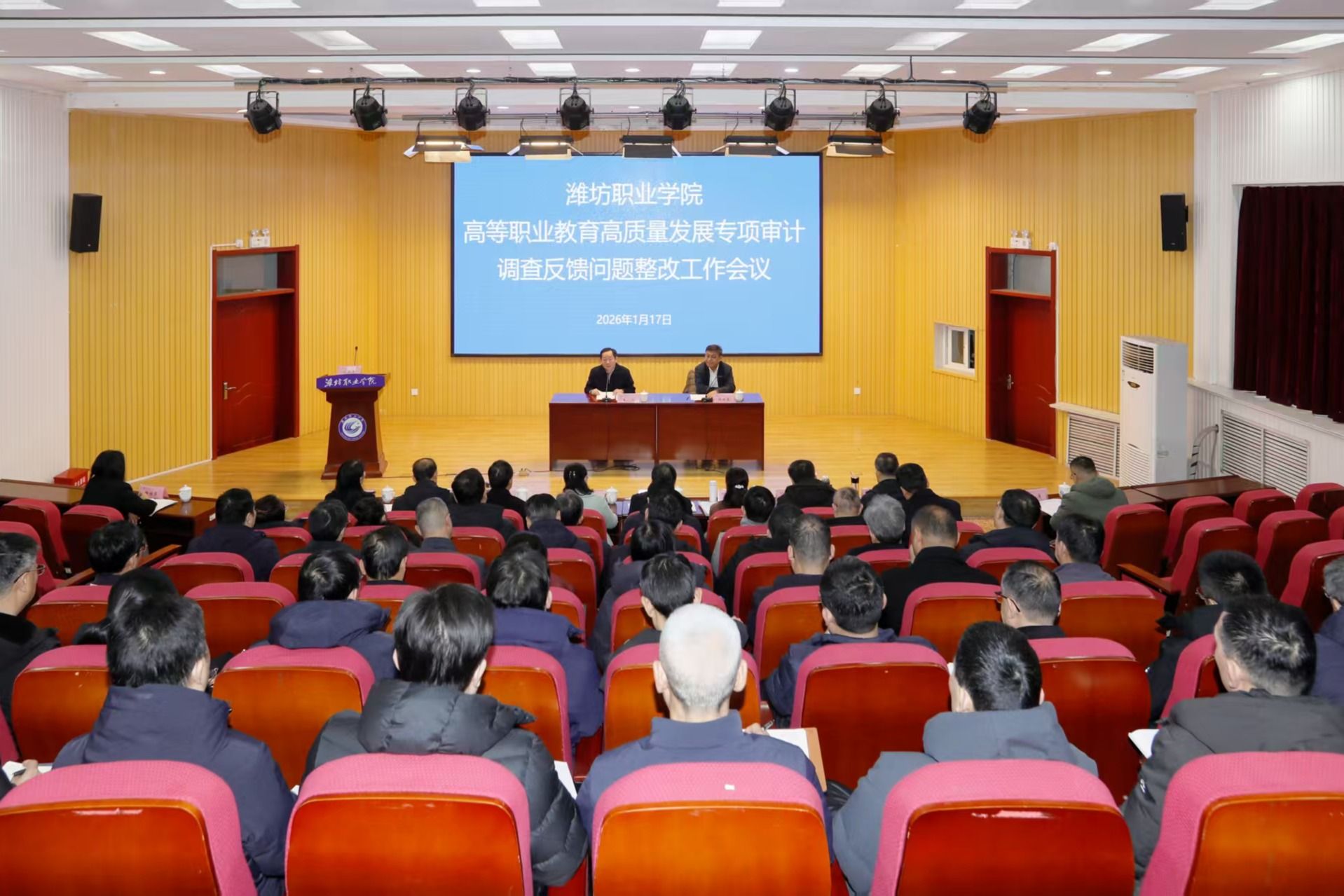 1月17日上午,学院召开高等职业教育高质量发展专项审计调查反馈问题整改工作会议和落实省教育厅开展审计发现典型共性问题自查自纠及整改工作会议。学院党委书记王浩、院长韩瑞东及其他领导班子成员出席会议,各职能部门与二级学院党政主要负责人,公寓管理中心、信息管理中心、饮食服务中心负责人以及审计科全体人员参加会议。韩瑞东主持会议。王浩就强化问题整改提出三点意见:一是提高政治站位、凝聚全员共识,深刻把握审计整改工作的重大意义。...更多 -