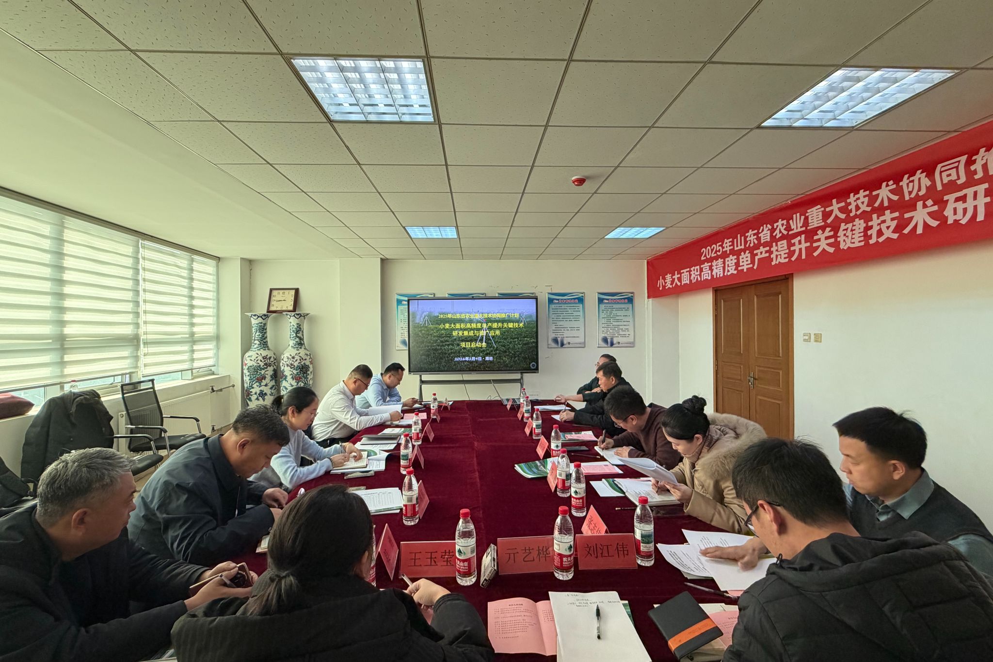 为推进2025年立项的山东省农业重大技术协同推广计划——小麦大面积高精度单产提升关键技术研发集成与推广应用项目落地,2月9日,我院院长韩瑞东率团队赴潍坊市农业科学院开展专项对接交流。潍坊市农业科学院院长袁柳天、潍坊市农业农村局科教科科长王文卓、潍坊市农技中心粮经科科长袁永胜,潍坊市农业科学院小麦所负责人于海涛、山东农业大学农学院代兴龙副教授,以及各方项目团队相关成员参与活动。袁柳天院长对我院一行表示欢迎,...更多 -
