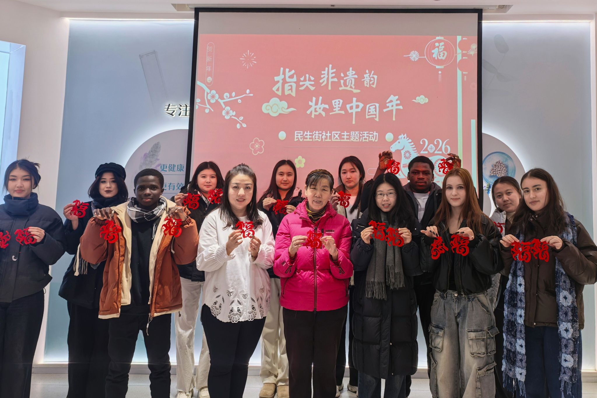 为迎接新春佳节,以剪纸寄福传递美好祝愿。1月28日上午,国际教育学院组织来自加纳、吉尔吉斯斯坦、土库曼斯坦等国家的10余名国际学生走进民生街社区,体验非遗剪纸文化。活动中,剪纸老师首先为国际学生们讲解了剪纸图案的设计思路及其背后蕴含的美好寓意——左侧的马代表马年,右侧的“福”字代表幸福,二者结合表达了马年幸福的美好祝愿。随后,老师现场演示了剪纸的基本技法,学生们在指导下亲手尝试,从生疏到熟练,逐渐剪出属于自己的作品。...更多 -