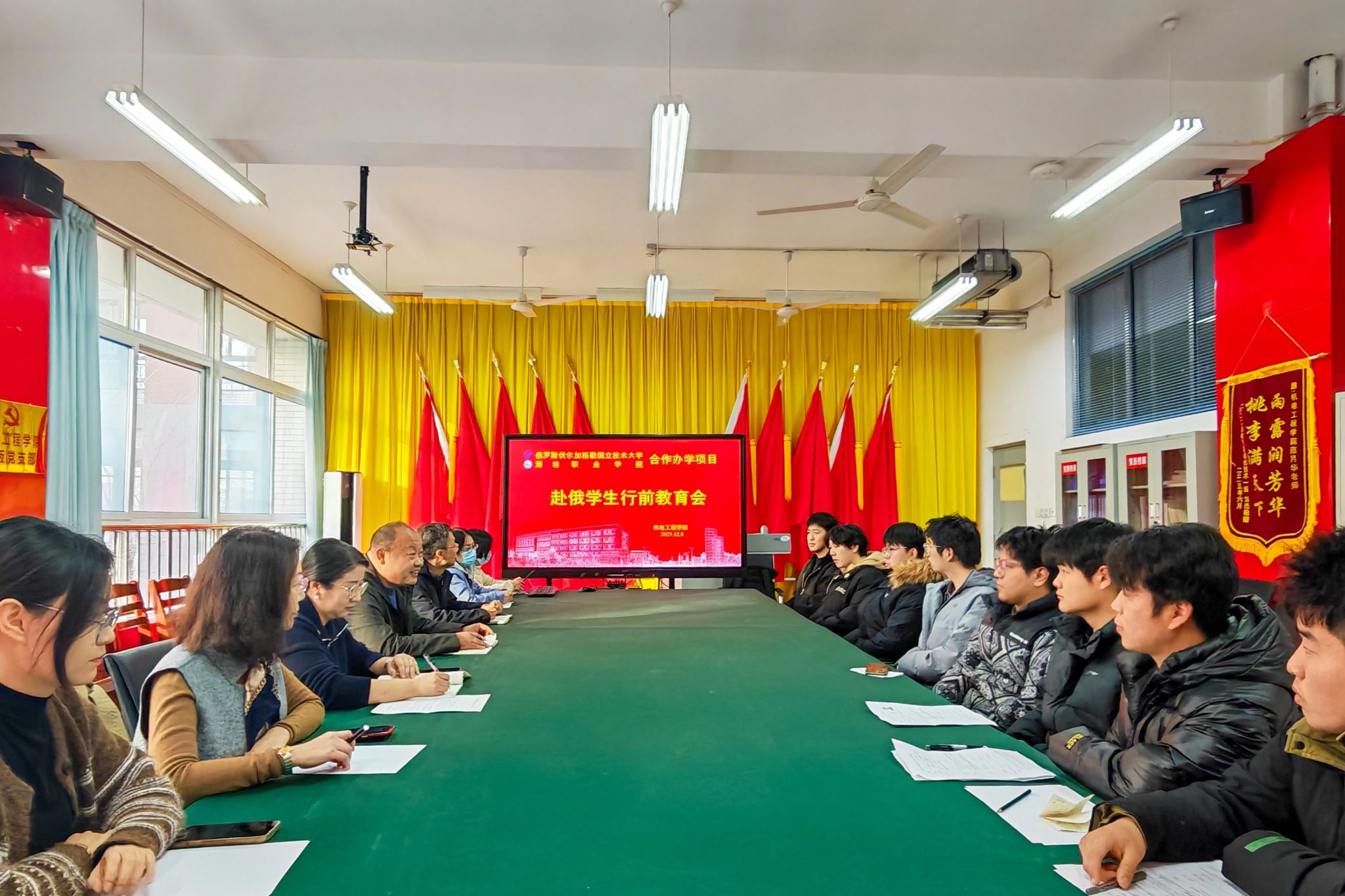为扎实推进中俄合作办学项目落地见效,帮助即将赴俄留学的学子做好充分准备、顺利开启海外求学之旅,12月8日,机电工程学院在惠泽2A-221会议室召开赴俄学生行前教育会,机电工程学院主要负责人、国际交流处副处长、电气自动化技术教研室负责人、相关教师、中俄班辅导员以及即将赴俄罗斯留学学生共同参加会议。会议伊始,机电工程学院主要负责人向即将出发的学生表示祝贺。他在讲话中着重强调,中俄合作办学项目是学院推进国际化人才培养的重要载体,...更多 -