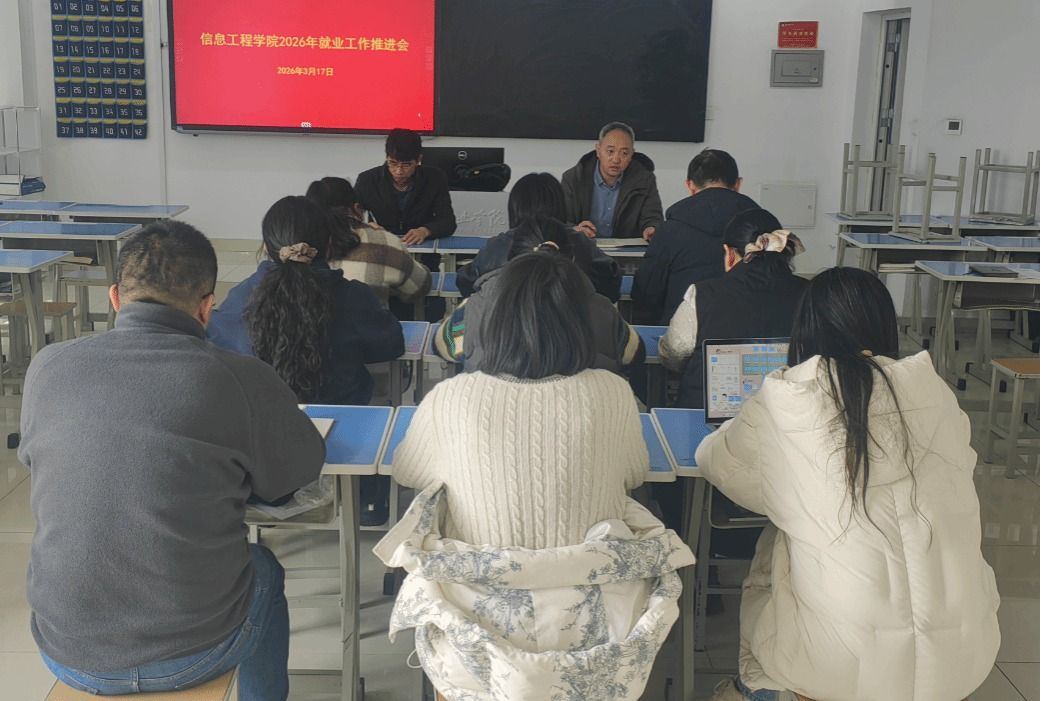 为贯彻落实上级关于高校毕业生就业工作的安排部署,全力促进毕业生更充分更高质量就业,3月17日,信息工程学院组织召开2026届毕业生就业工作推进会议,信息工程学院党总支负责同志、分管学生工作负责人及2026届毕业班全体辅导员参加会议。会上,信息工程学院党总支负责同志传达了学院2026届毕业生就业工作会议精神,分析了目前2026届毕业生面临的就业挑战,并结合当前国家有关就业政策和要求,就当前毕业生就业工作提出四点要求:一是要提高政治站位,...更多 -