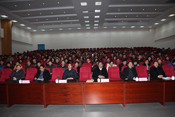 为更好地深刻领会中国共产党第十八届五中全会精神实质和丰富内涵,推动我院各项工作再上新台阶,1月7日下午,我院在滨海校区图书楼报告厅举行学习贯彻党的十八届五中全会精神报告会。山东省人民政府参事、中国海洋大学教授、博士生导师田建国教授作报告。学院院长王家爱,党委副书记宋桂言,副院长赵君堂、贺志强、毕建华,纪委书记李瑞昌及学院中层干部、教职工代表共300多人参加报告会。报告会由宋桂言主持。