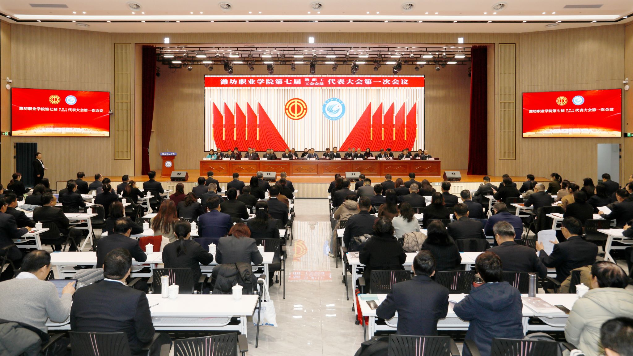 12月11日,潍坊职业学院第七届教职工代表大会第一次会议、第七届工会会员代表大会第一次会议在综合楼报告厅举行,山东省教育工会发来贺信。潍坊市总工会党组成员、副主席徐连奎出席开幕式并讲话,学院党委书记王浩、院长韩瑞东等党政领导班子成员、大会主席团成员和特邀代表在主席台就座。学院正式代表、特邀代表、列席代表200余人参会。