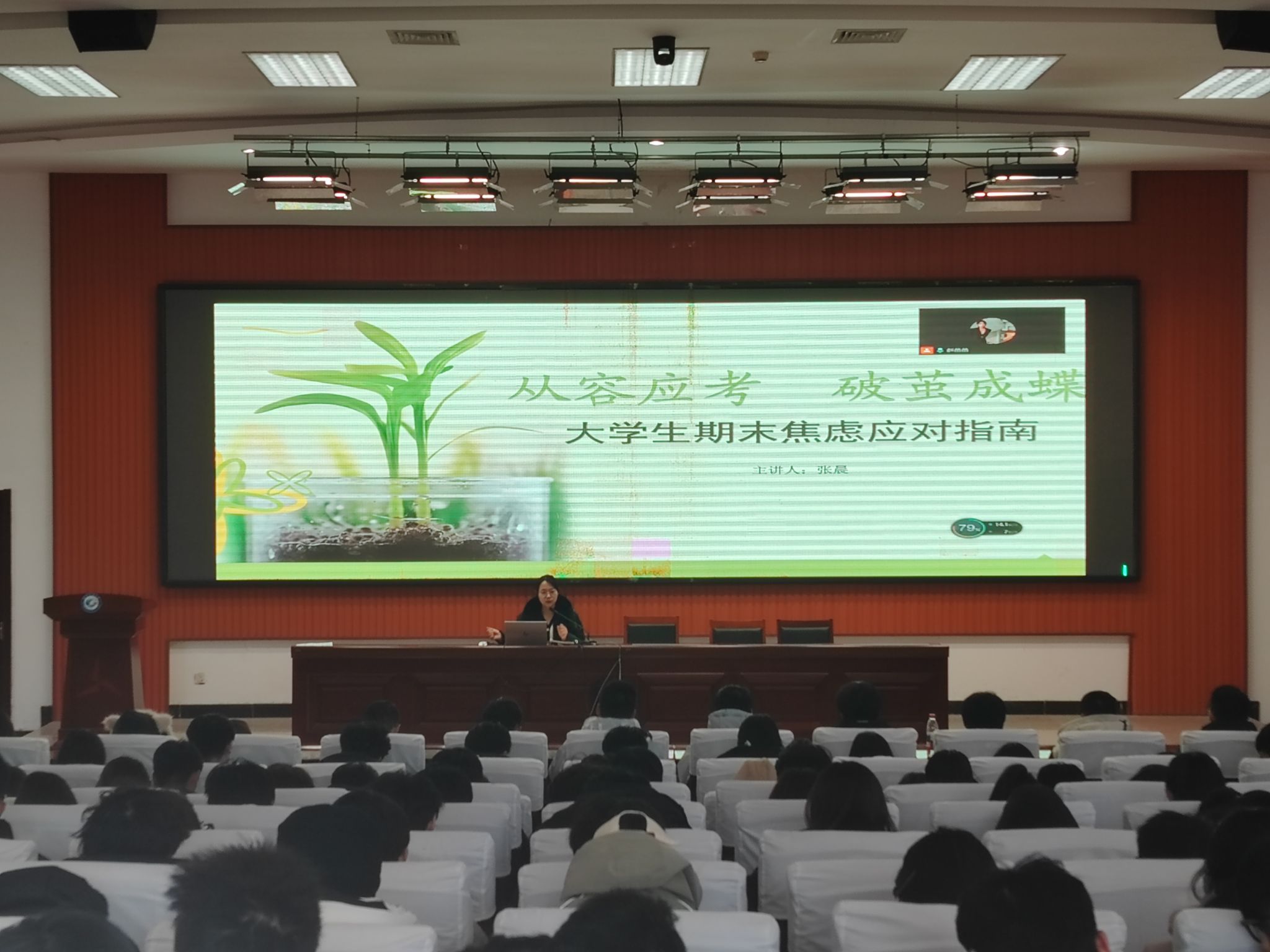 本次讲座由文化创意学院张晨老师主讲,张老师以《从容应考 破茧成蝶——大学生期末焦虑应对指南》为题,围绕期末焦虑的识别与应对,从情绪、生理、行为三个维度为同学们剖析了期末焦虑的典型信号,深入分析了焦虑背后的外部压力与内在因素,引导同学们要正确认识焦虑,并指出“适度焦虑是正常反应,可转化为备考动力”;她从心态、学习、身体三个方面,向同学们分享了“缓解焦虑的三维攻略”,并强调要学会借助老师、同学、亲友来构建自身的支持网络。讲座过程中,张老师还带领同学们练习了“4-7-8 呼吸法”“肌肉放松法”。讲座结束后,同学纷纷表示要稳扎稳打备考,从容应对考试挑战。