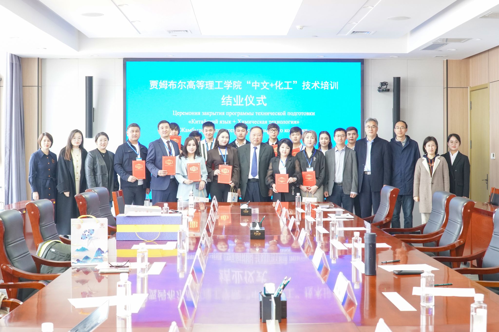 3月27日上午,哈萨克斯坦贾姆布尔高等理工学院师生研修团结业仪式在滨海校区综合楼会议室举行。学院党委委员、副院长付一明,国际交流与合作处、化学工程学院负责人等,与贾姆布尔高等理工学院全体研修师生共同出席结业仪式。