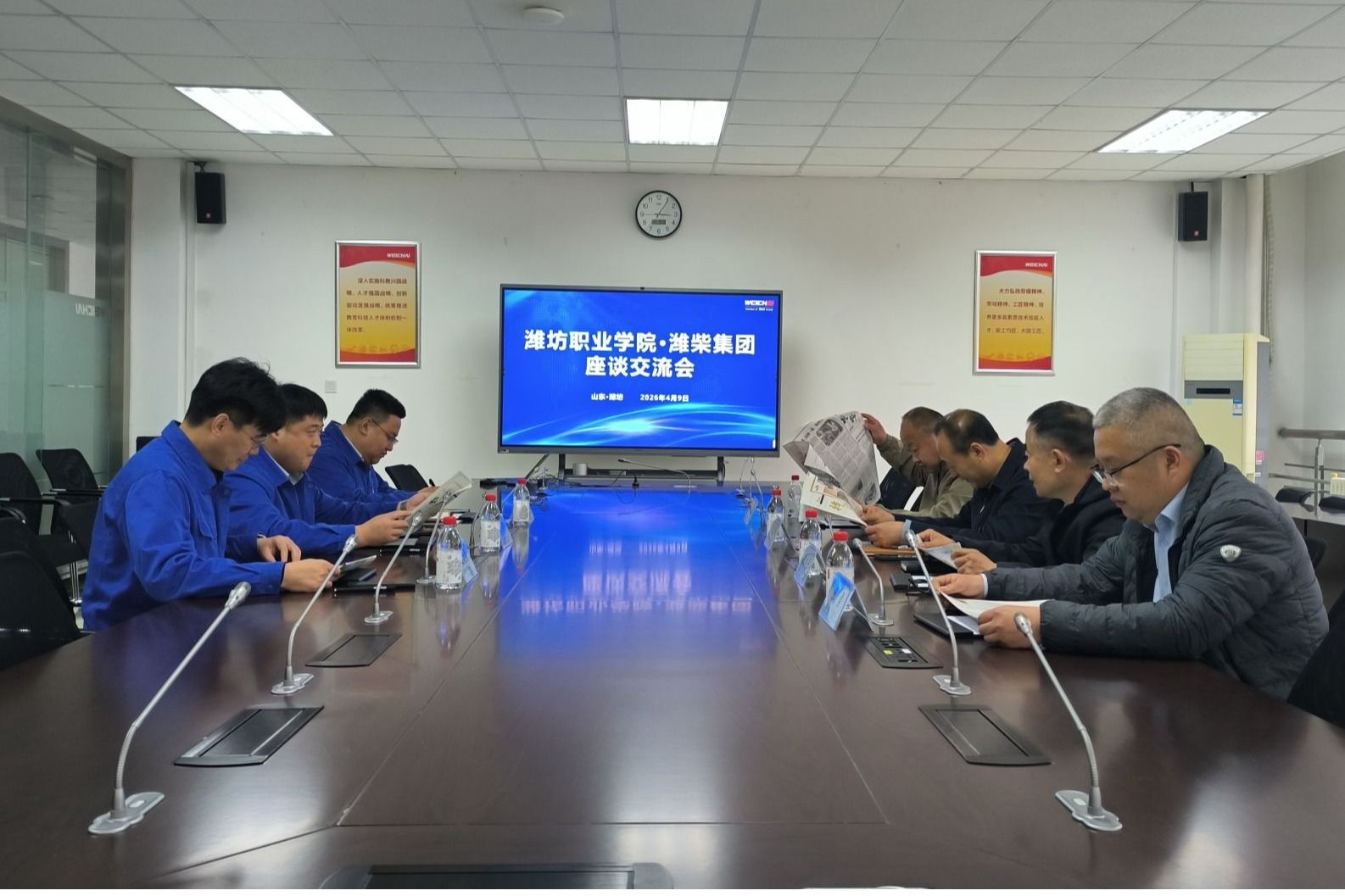 交流中,学院一行与潍柴大学、潍柴雷沃智慧农业科技有限公司相关负责人分别展开座谈,详细了解了企业发展布局、人才需求标准及校企合作现状,重点就共建现代产业学院、打造工学交替实践基地、产教融合共同体建设、订单班招生等方面交换了意见。校企双方一致认为,将立足动力装备、智能农机装备等领域产业发展需求,推动企业技术标准与课堂教学深度融合,实现人才共育、过程共管、成果共享的协同育人模式。