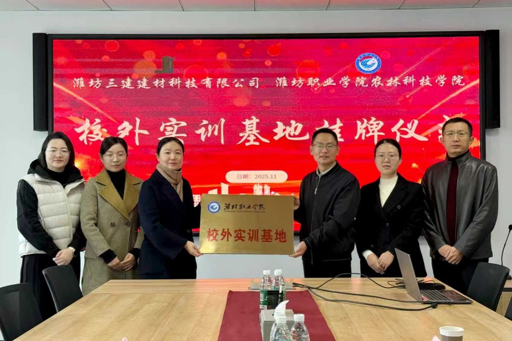 为深化产教融合,加强校企合作,拓展学生实习与就业渠道,11月7日,农林科技学院主要负责人带领相关教师前往潍坊三建建材科技有限公司,开展访企拓岗活动,并举行“农技小院”与“校外实训基地”挂牌仪式。公司生产经理郭祥洋、销售经理刘朋程、人力资源部长张洪芝出席活动。