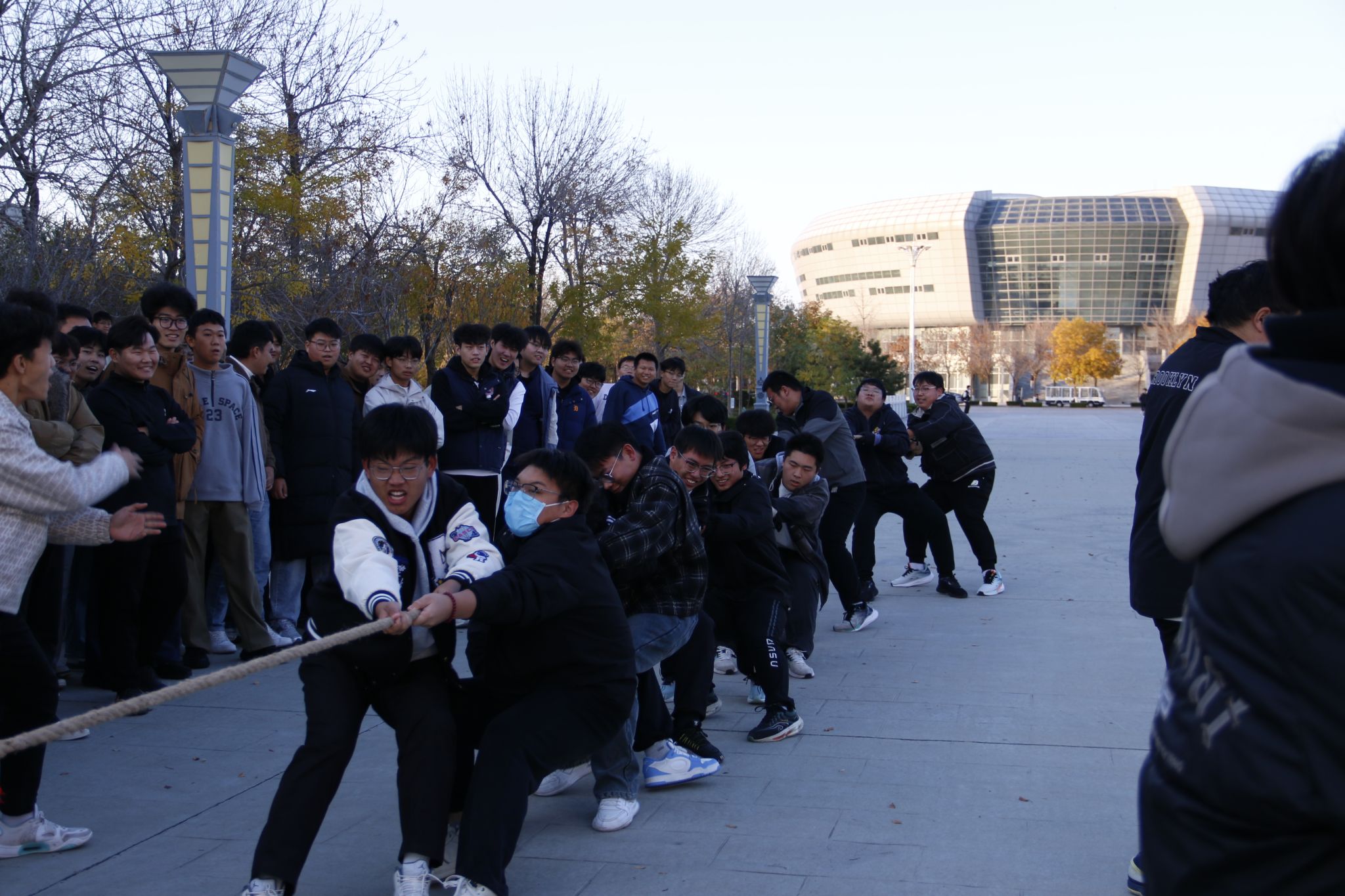 为丰富校园文化生活,增强班级凝聚力,培养学生团结协作与拼搏奋斗的精神,11月15日,汽车工程学院举办了“‘绳’采飞扬,凝心聚力”拔河比赛。