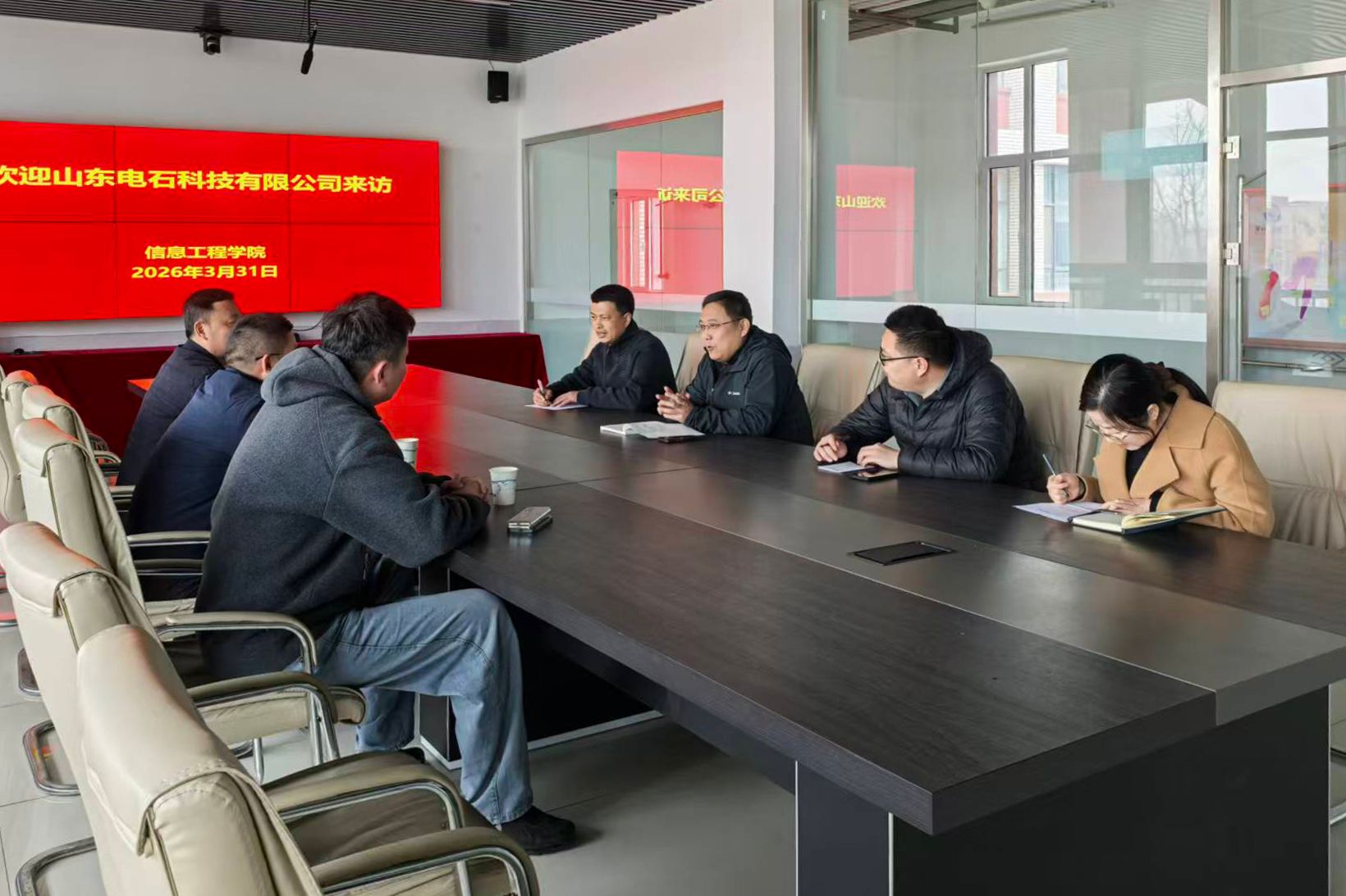 3月31日,山东电石科技有限公司负责人张德存等一行3人到信息工程学院洽谈校企合作事宜。信息工程学院主要负责同志及相关专业教师参加。
