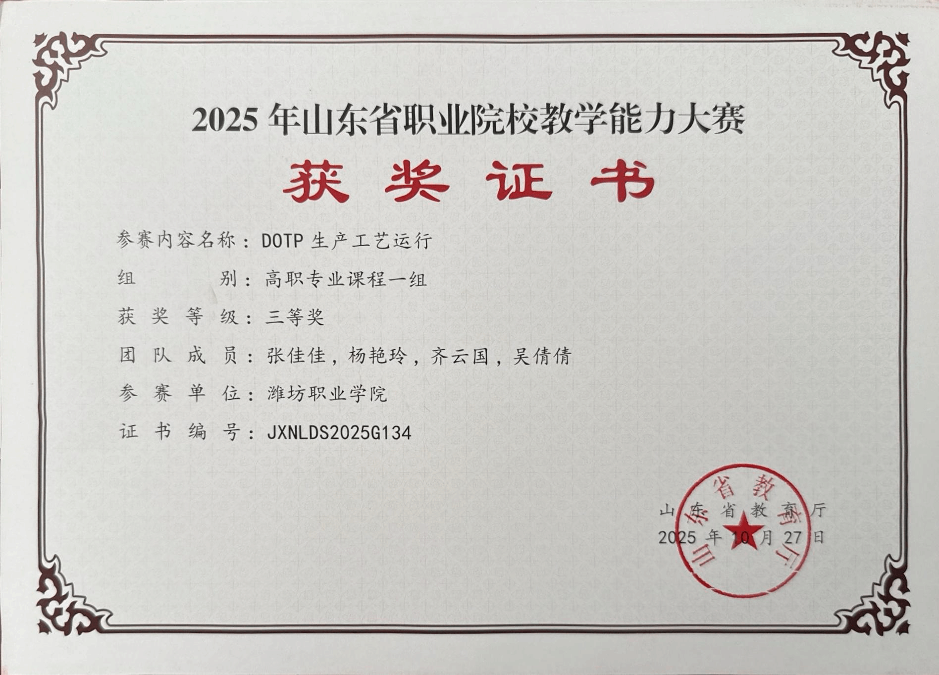 2025年山东省职业院校教学能力大赛三等奖(高职专业课程一组)