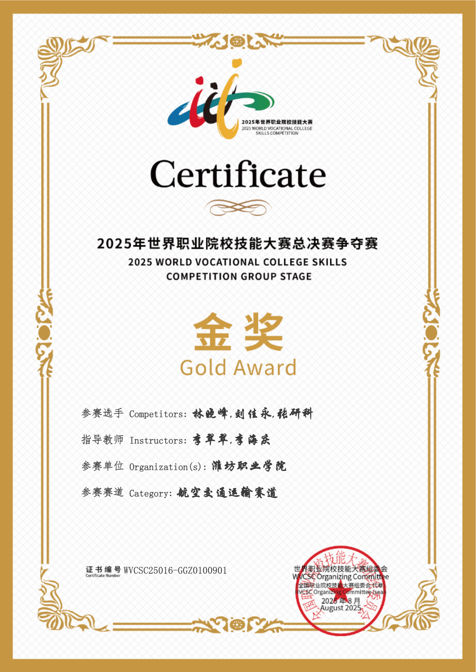 2025年世界职业院校技能大赛总决赛争夺赛金奖(航空交通运输赛道)
