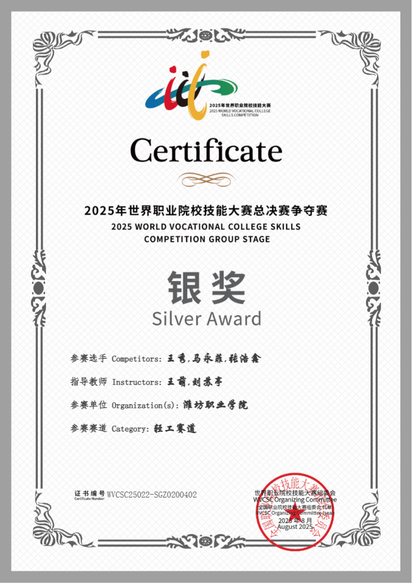 2025年世界职业院校技能大赛总决赛争夺赛银奖(轻工赛道)