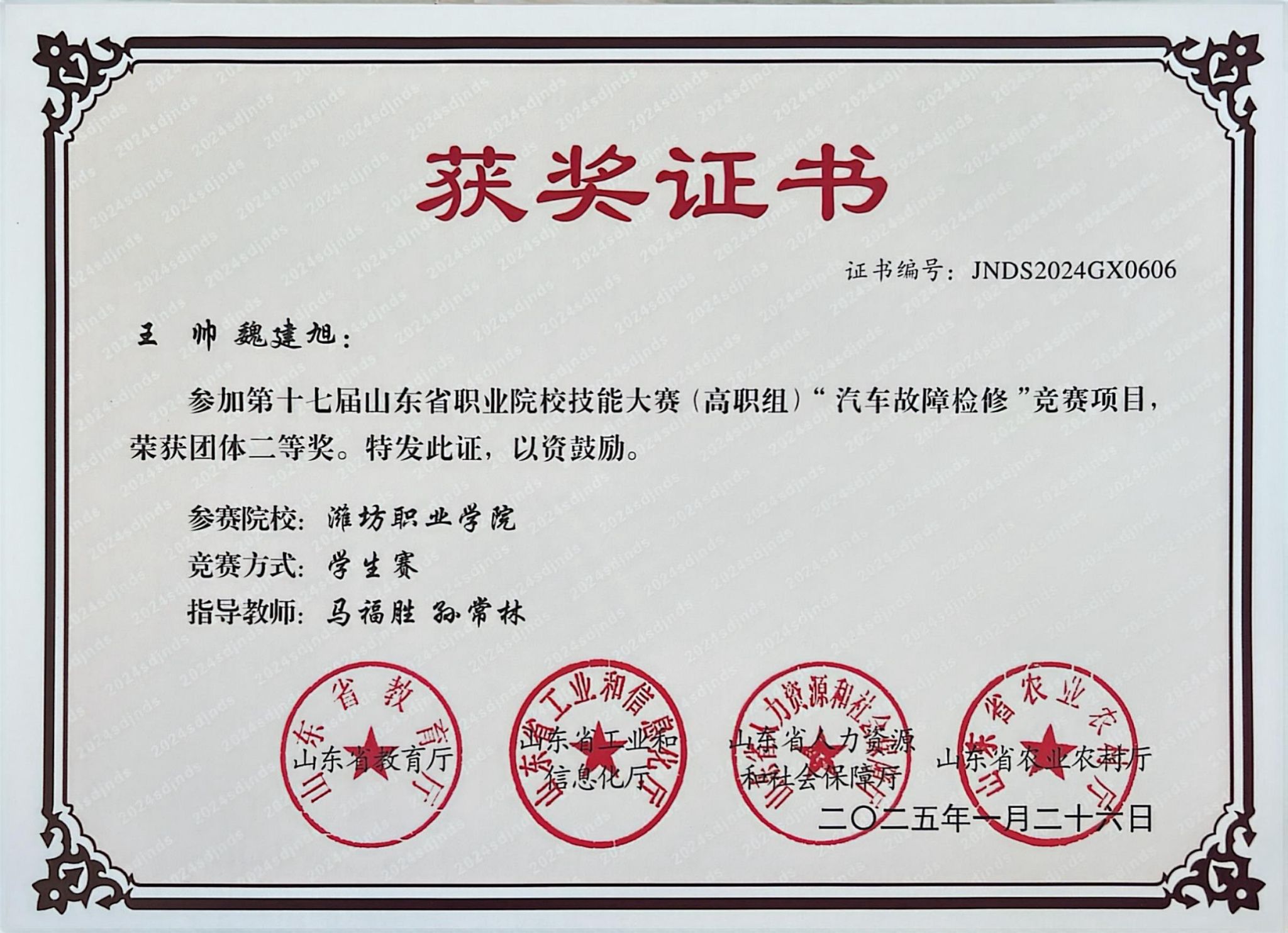 第十七届山东省职业院校技能大赛(高职组)“汽车故障检修”竞赛项目二等奖