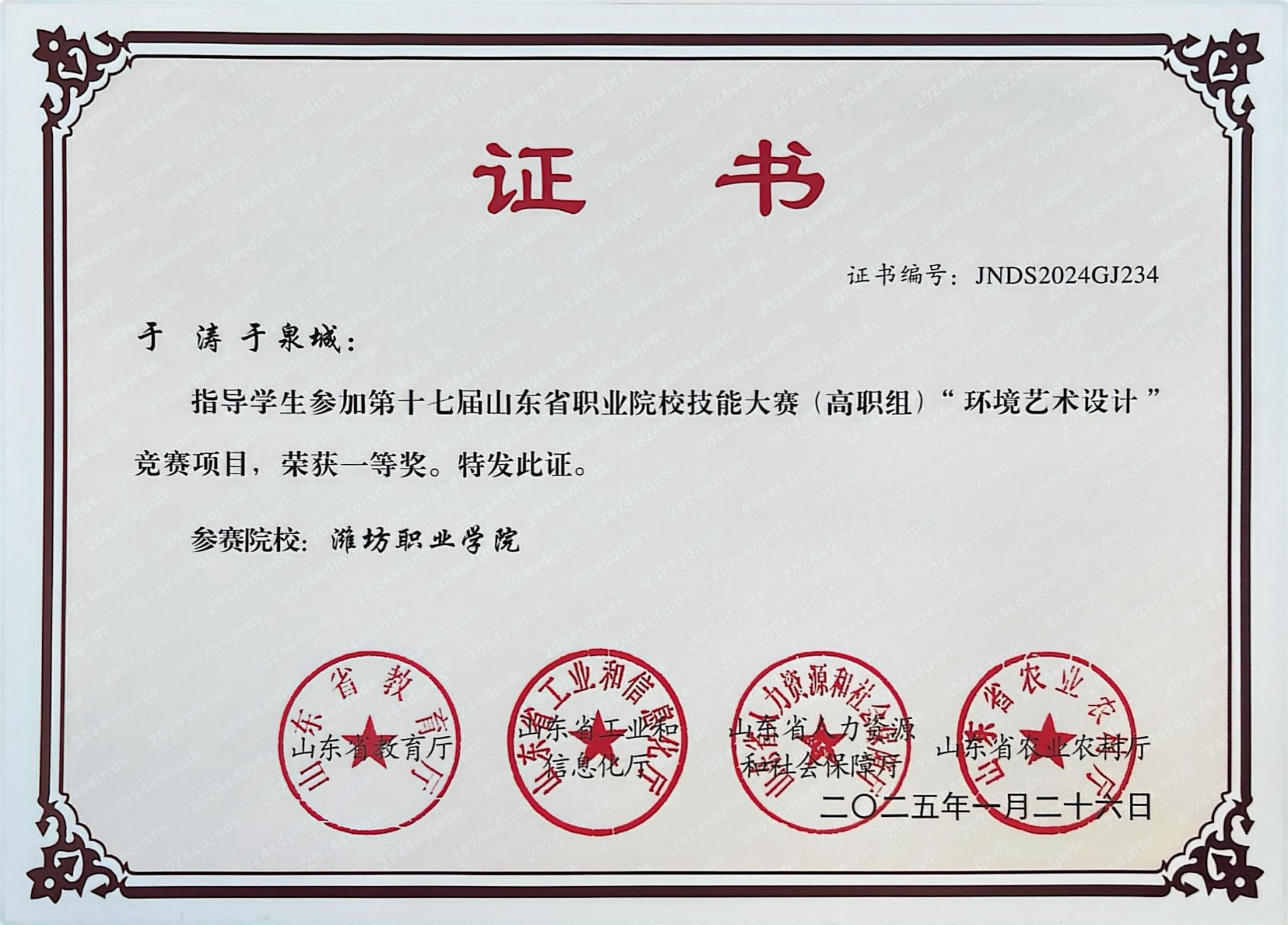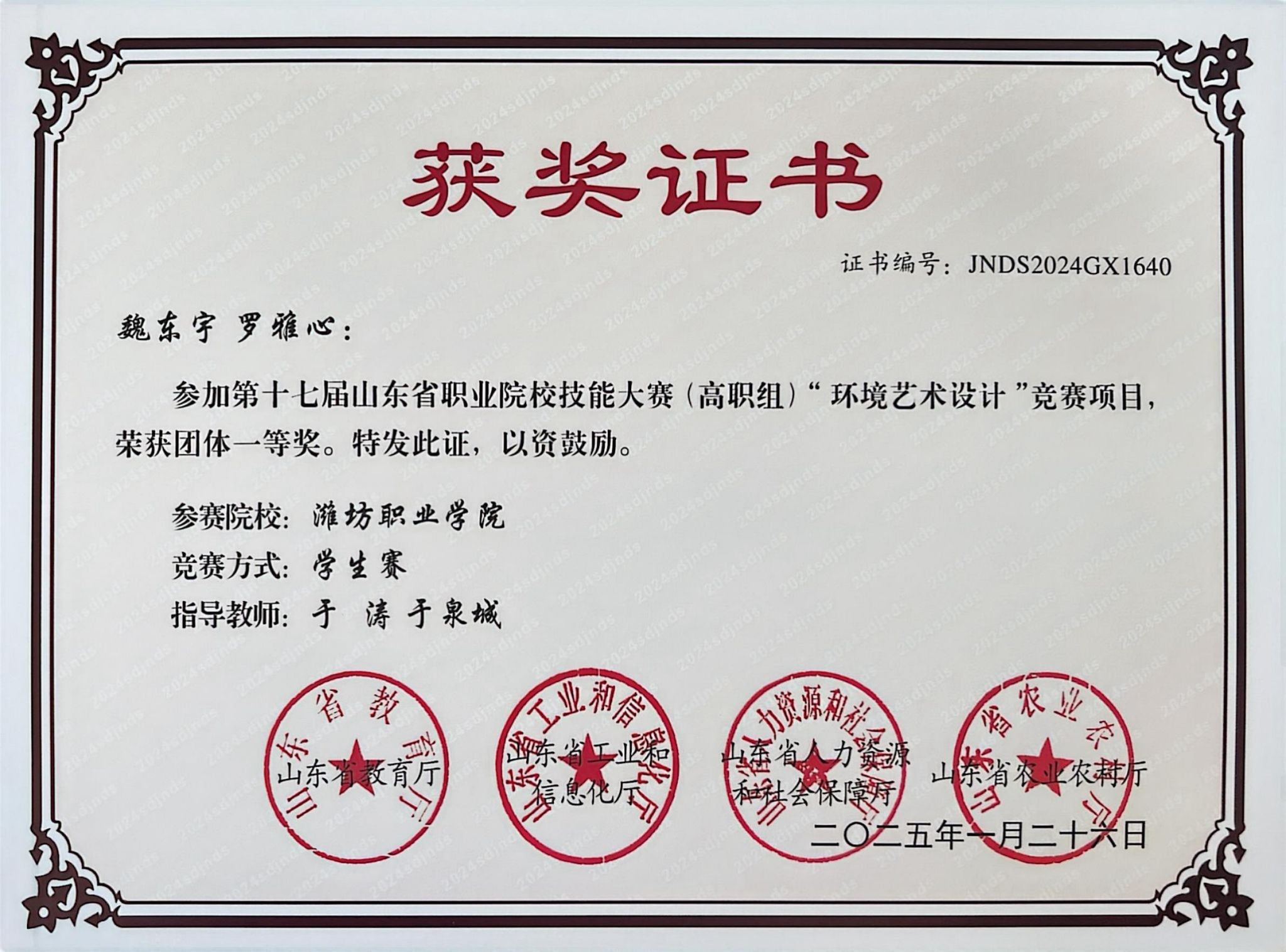 第十七届山东省职业院校技能大赛(高职组)“环境艺术设计”竞赛项目一等奖