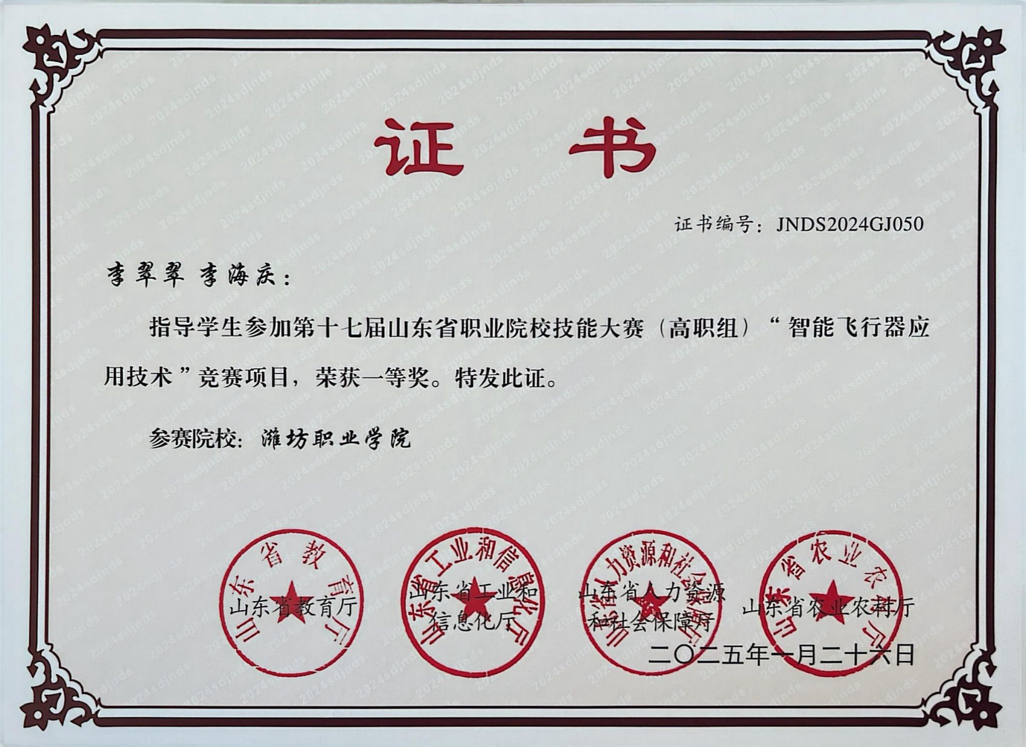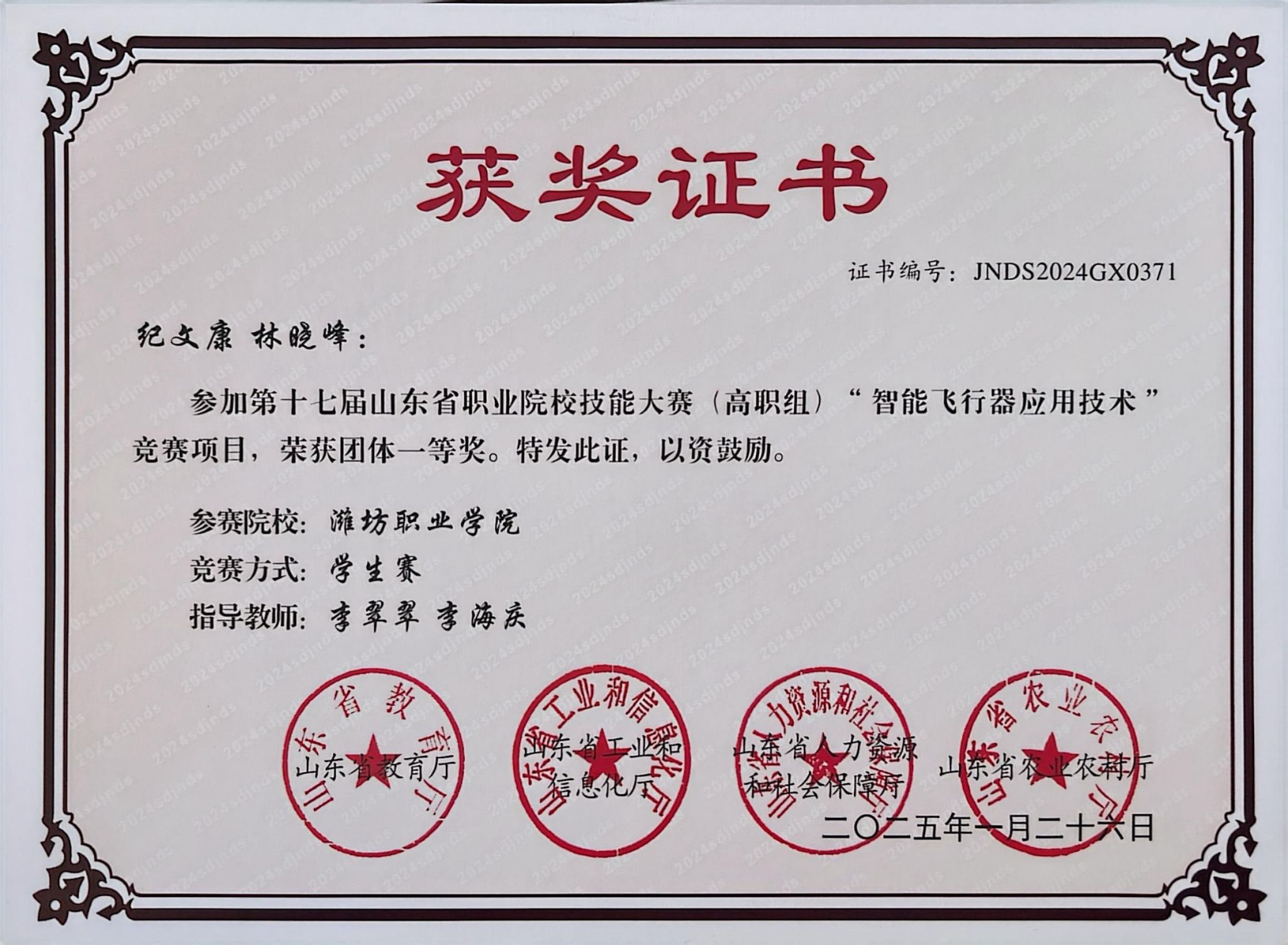 第十七届山东省职业院校技能大赛(高职组)“智能飞行器应用技术”竞赛项目一等奖